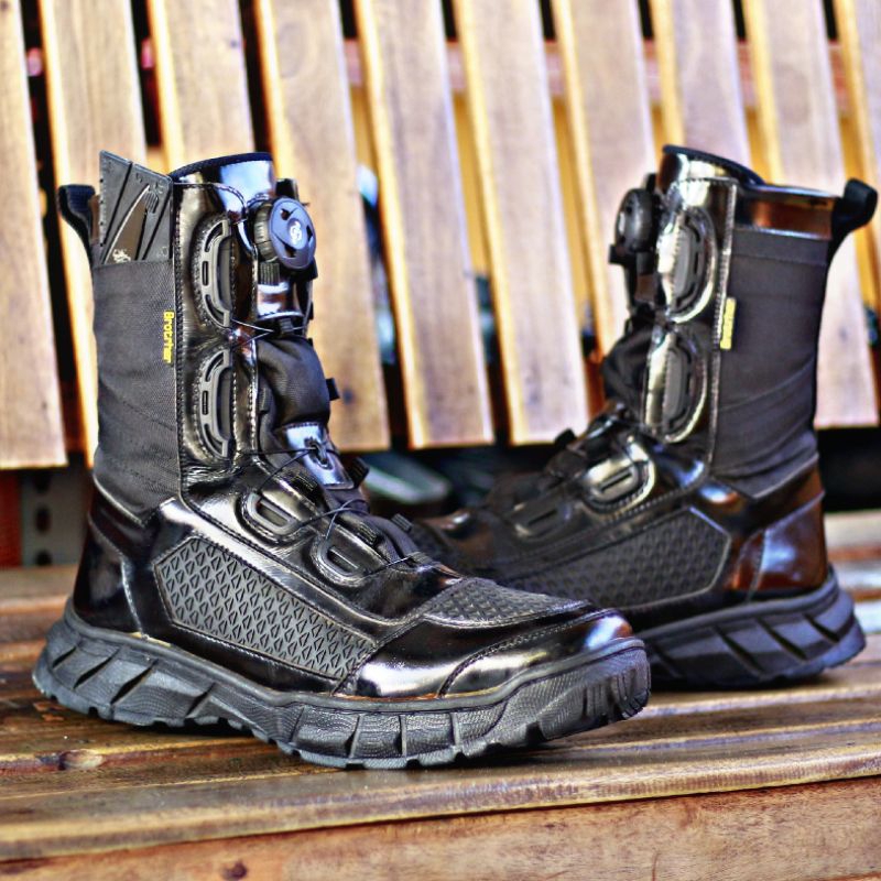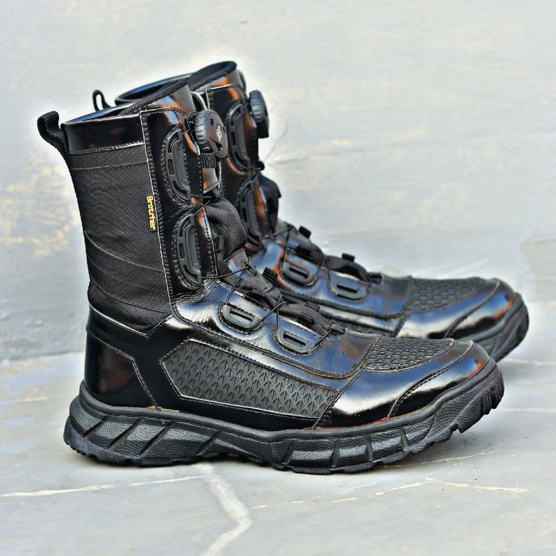 Sepatu Pdl Tali Putar Kulit Kilap Merk Brotrher Fitwon Kilap Bahan Kulit Sapi Kombinasi Kordura Anti Air Tali Putar Fitg