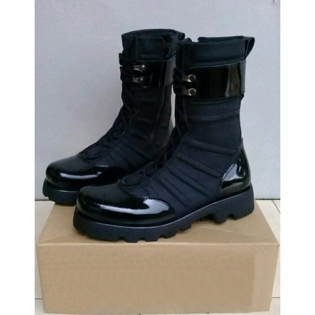 Promo Zimzam Sepatu Pdl Ninja Titan Safety Black Kulit Lak Sol Radial Tni Polisi Murah