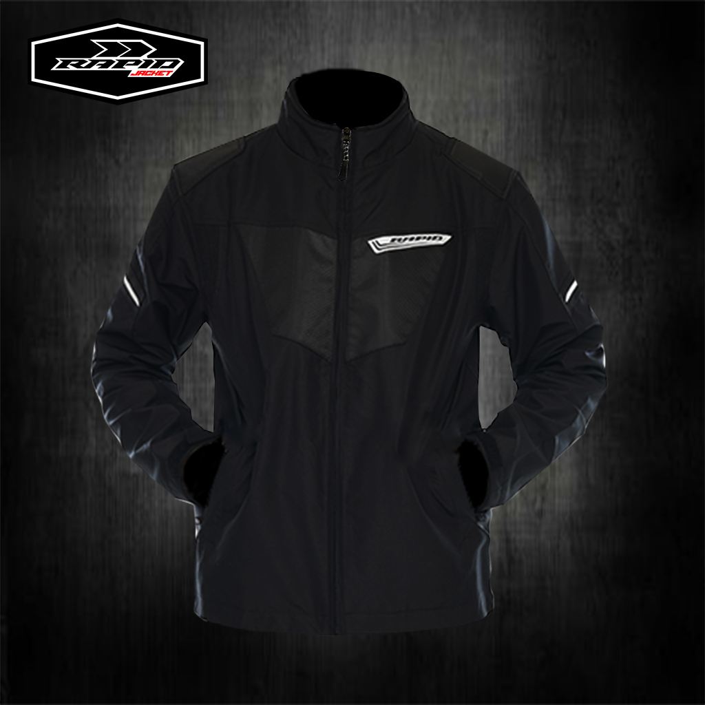 Jaket motor pria full black RAPID BLACKHAWK bahan parasit premium jacket reflektif kombinasi motif carbon