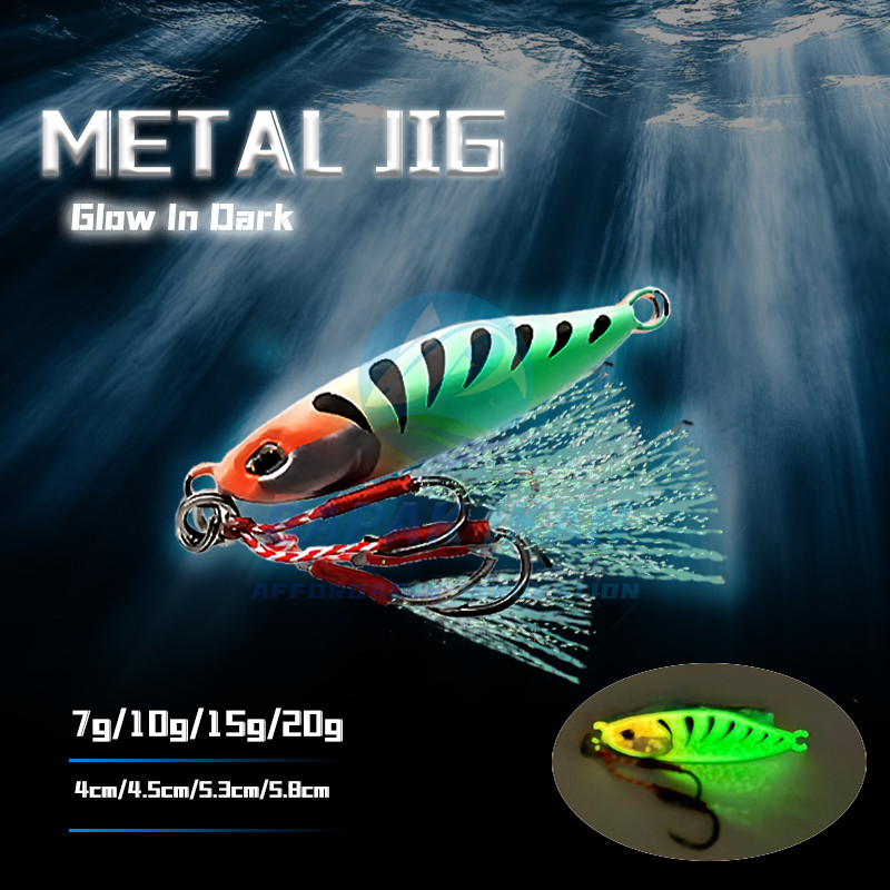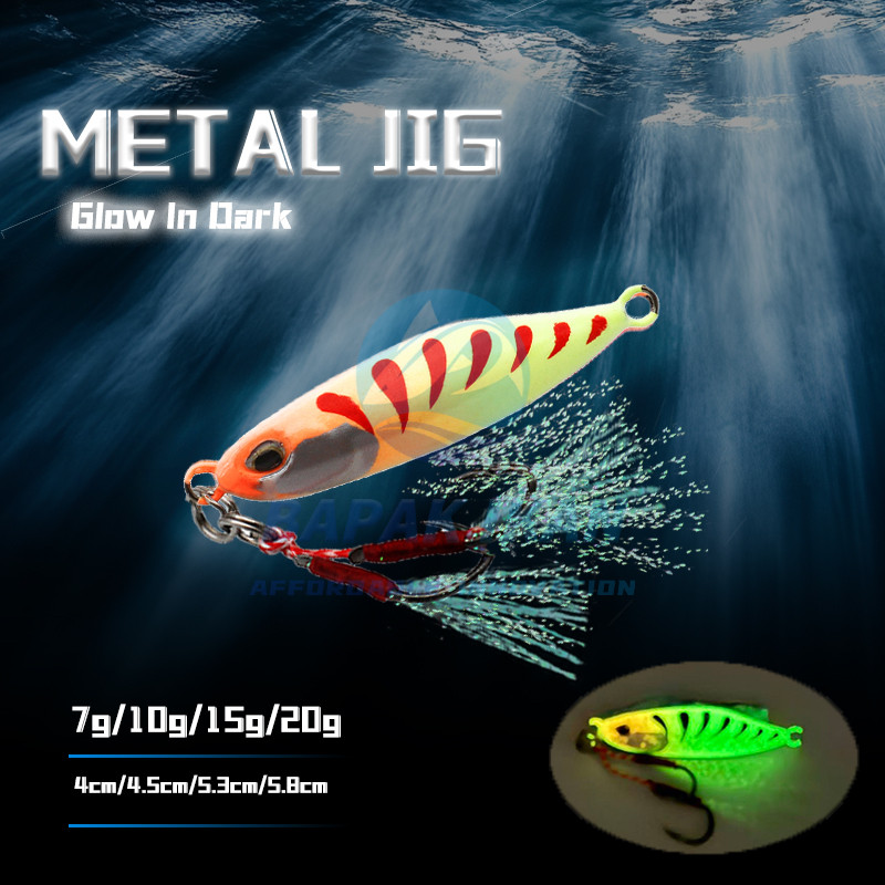 Umpan Metal Jig 10 Gram Bapak ikan GID Glow In The Dark + Double Assist Hook Jig 10gram Metaljig
