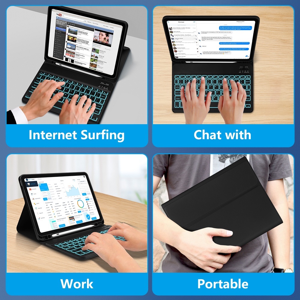 Samsung Galaxy Tab A9 Plus 11 Inch 2023 X210 X215 X216 Book Cover Leather Flip Case Keyboard Backlit Backlight Wireless