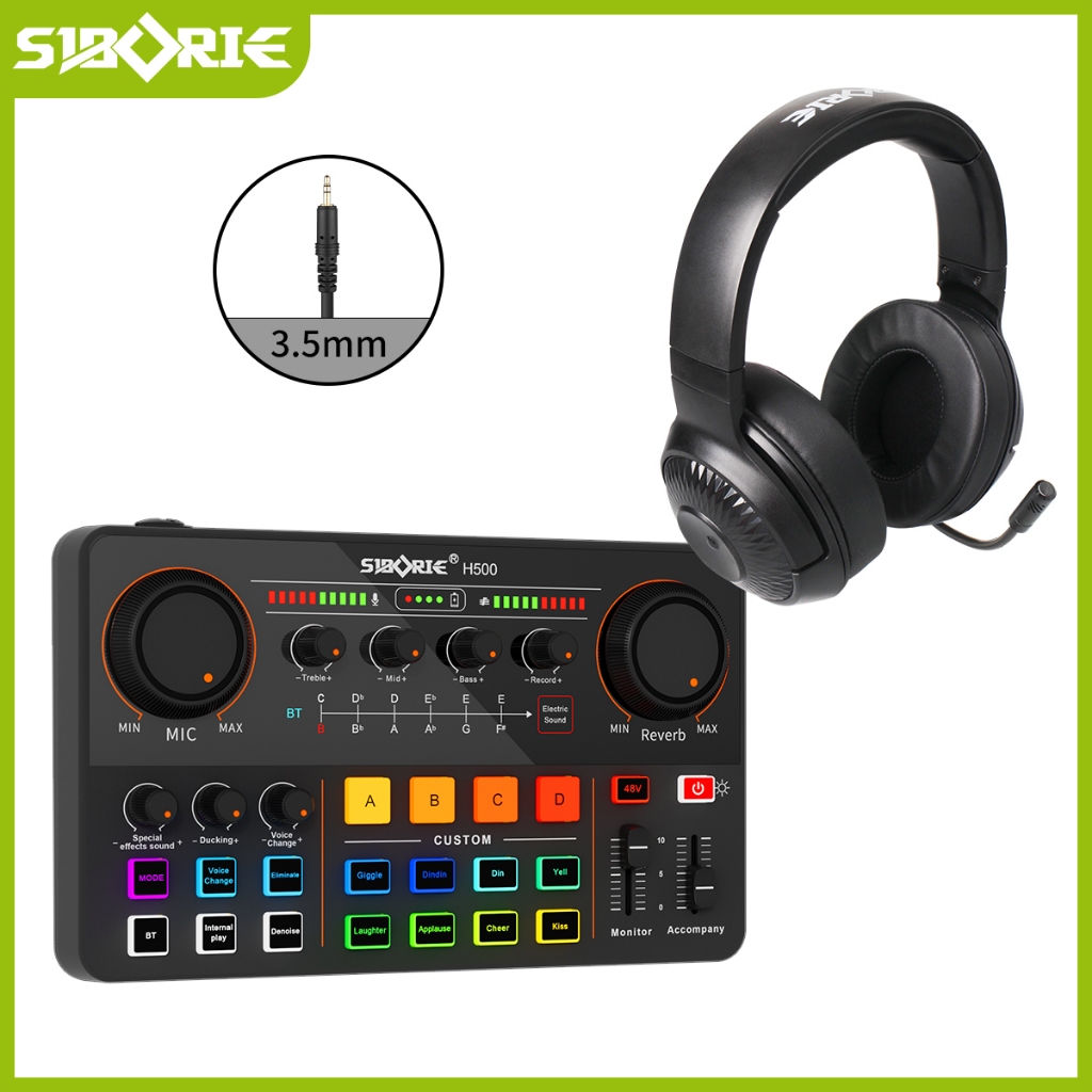Siborie H500 Sound Card+H7 Headphone Paket Komplit Peralatan Streaming Langsung Teratas