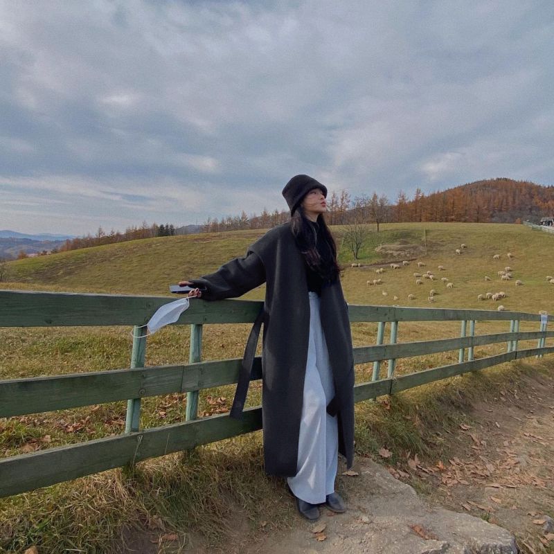 Jaket Jas Blazer Jubah Panjang Wanita Long Coat Wanita Korea Bahan Flece Kekinian Crem Xl