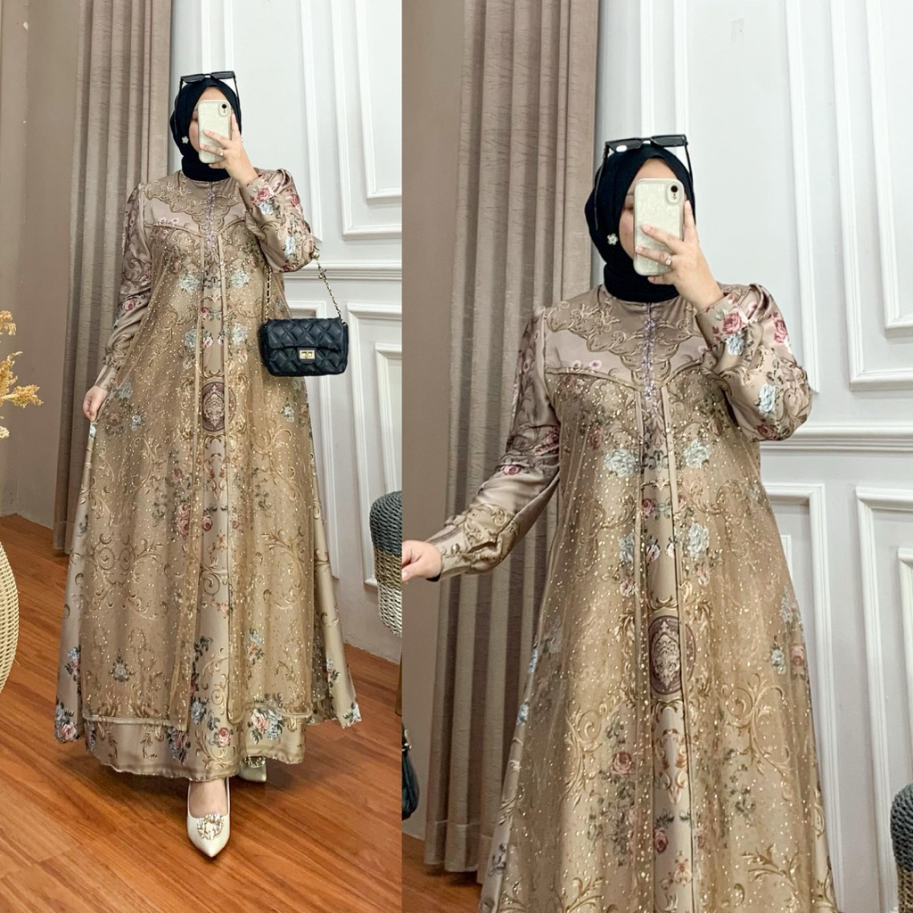 SAVIRA Dress Gamis Kondangan Lebaran 2026 Mewah Armani Silk Tile Snow