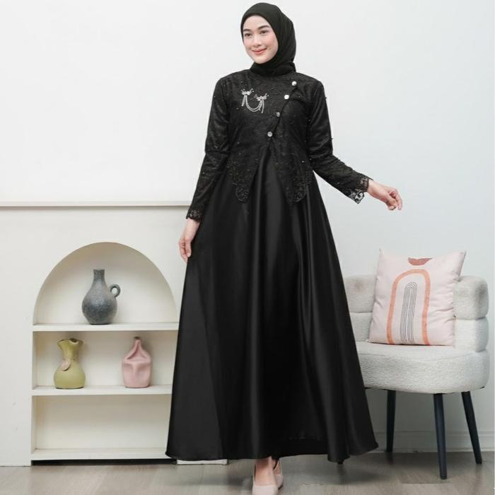 (ADA JUMBO) Dress Pesta Modern SAHARA Series Gamis Brukat Busui Kondangan Nikahan Baju Gamis Lebaran Wanita Terbaru