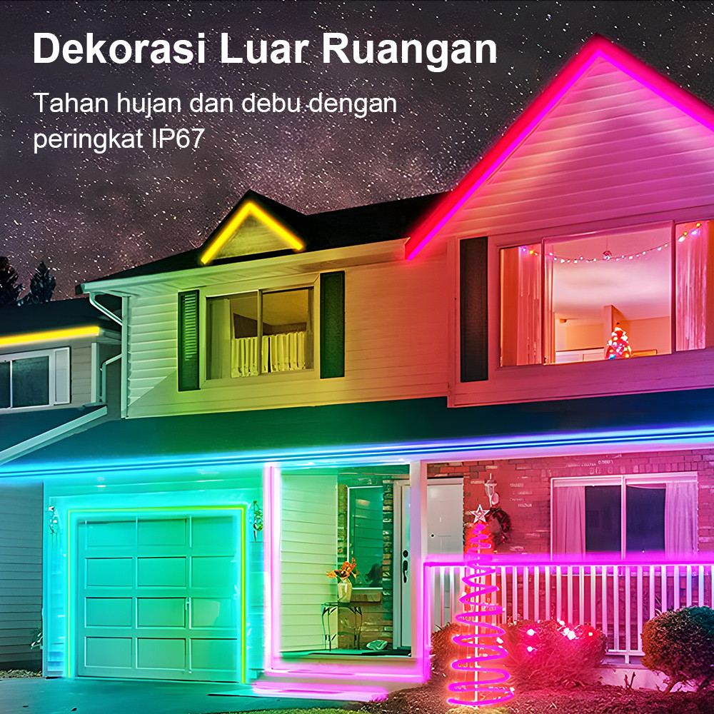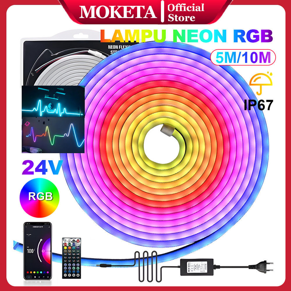 Paket Led Neon Flex Rgb Running 5M/10M Dc 12V/24V Sensor Hp Lengkap Sensor Suara App Control Adaptor