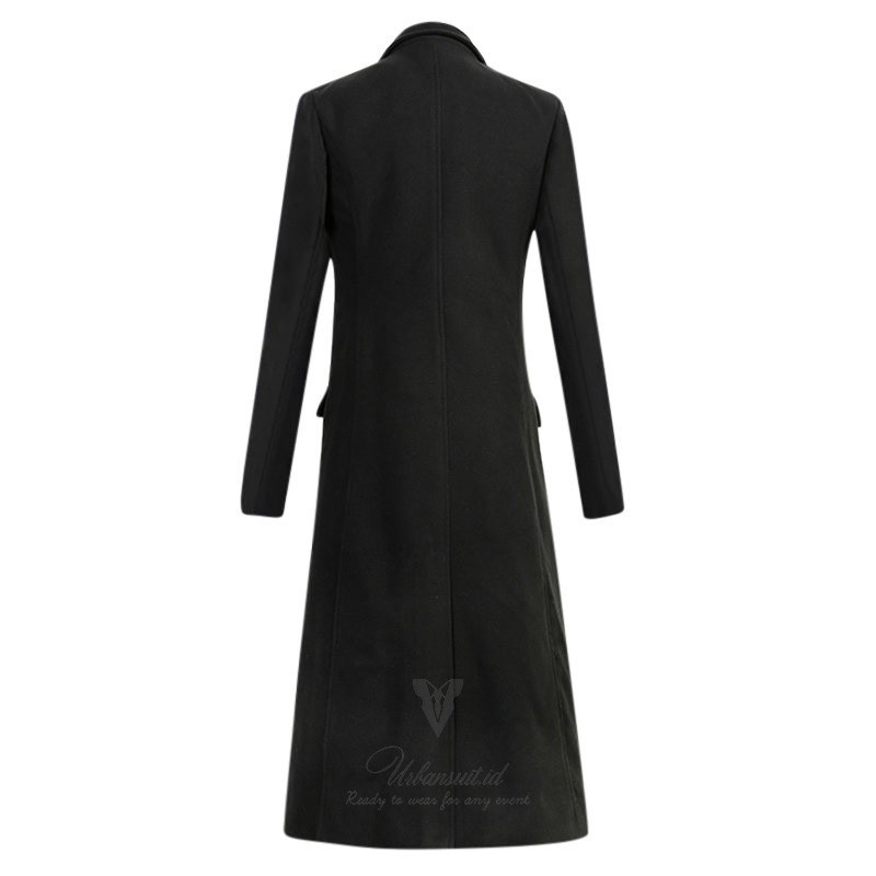 Premium Jas Blazer Jubah Panjang Pria Saku Tutup Long Coat Pria Katun Flece Korea Black M