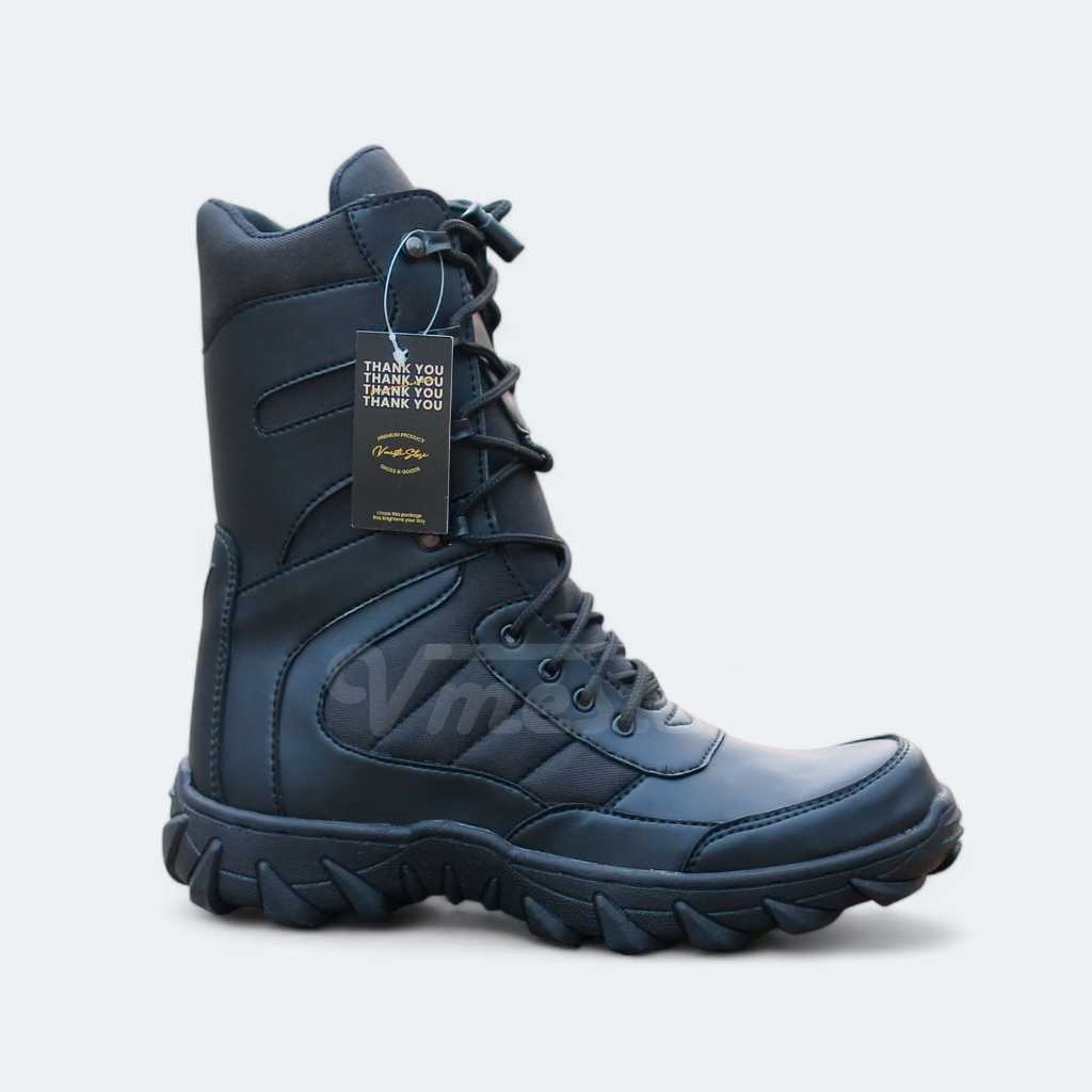 Vmeste - Sepatu Pdl Predator Tni Polri Brimob Security Satpam Kulit Sintetis Hitam Doff Ujung Besi