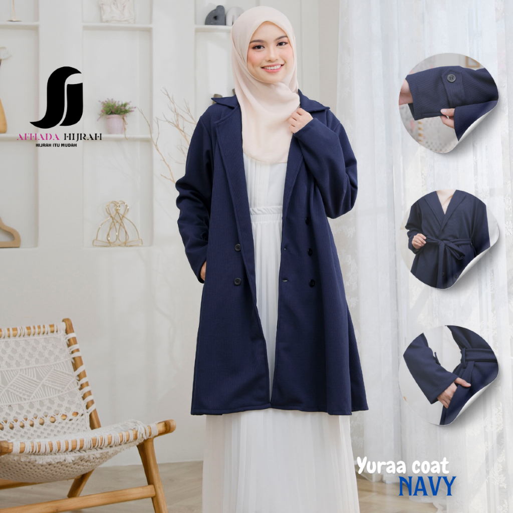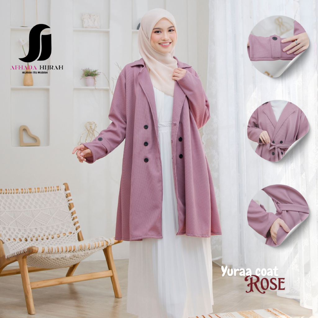 Afhadahijrah - Long Coat Wanita Yuraa Korea Style Outer Muslimah Blazer Terbaru