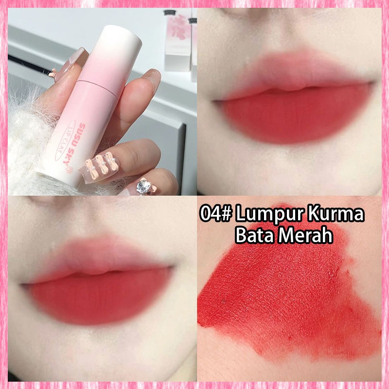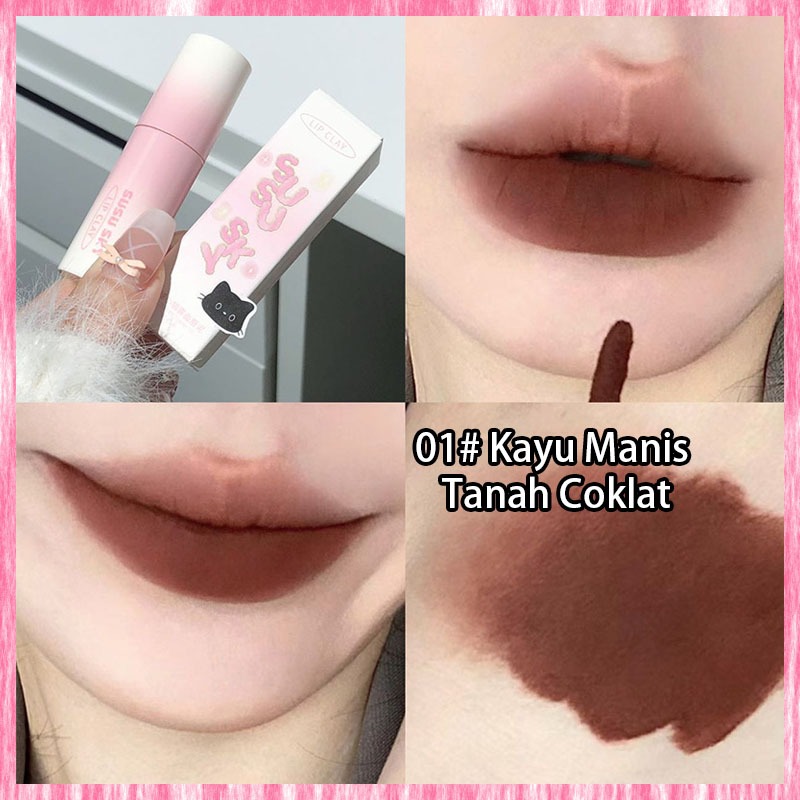 【SUSU SKY】Lip Cream Matte Tahan Lama / Velvet Lip Mousse - Warna Coklat Menawan Mudah Diaplikasikan, Tidak Buat Bibir Kering (Waterproof, Transfer-Proof)
