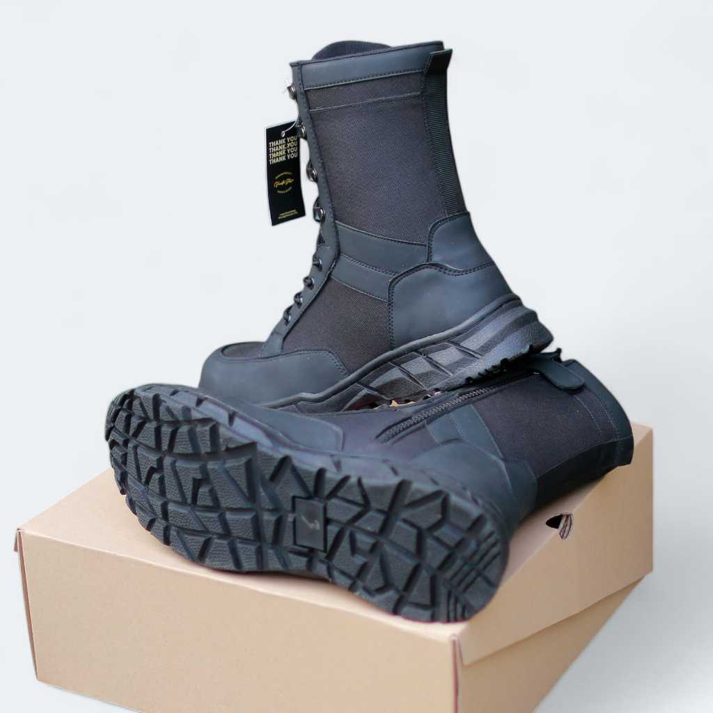 Vmeste - Sepatu Pdl Weba Jatah Tni Polri Brimob Security Satpam Kulit Sintetis Hitam Doff Resleting