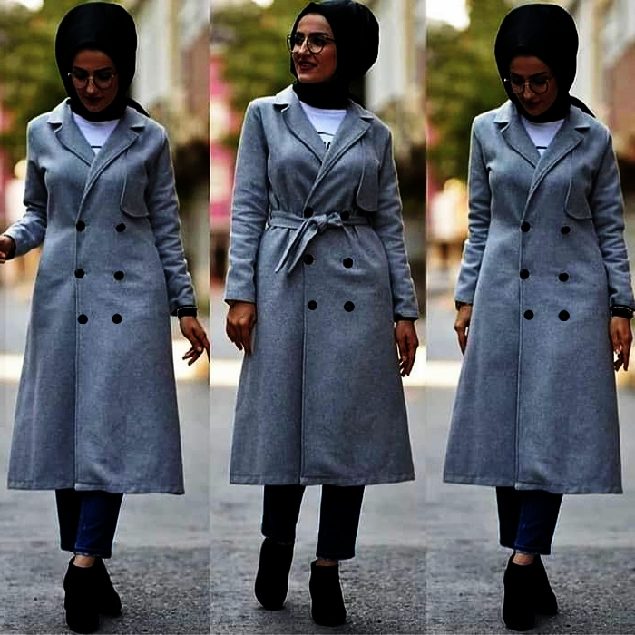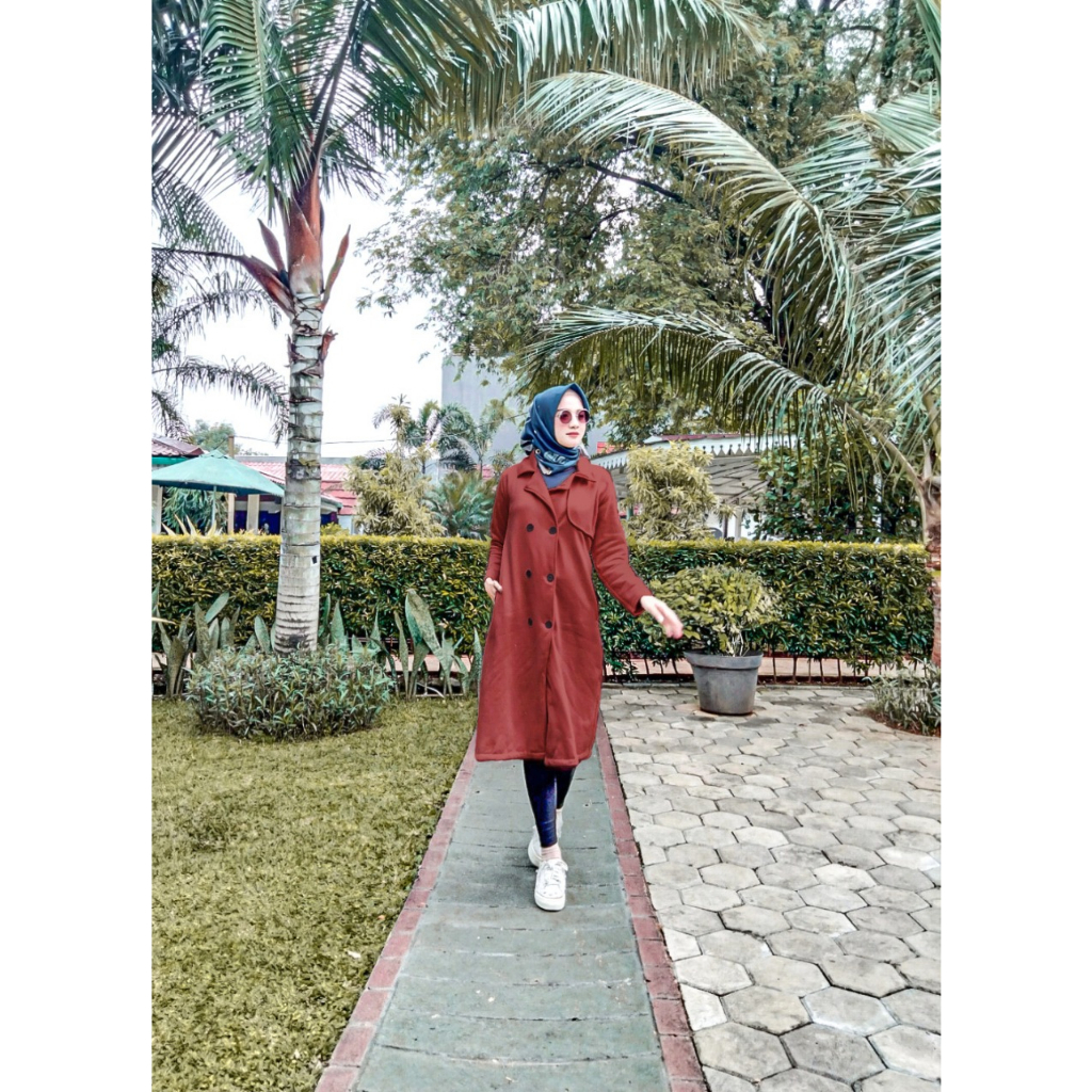 Dnkri - Long Coat Blazer Wanita Muslimah Tebal Jaket Panjang