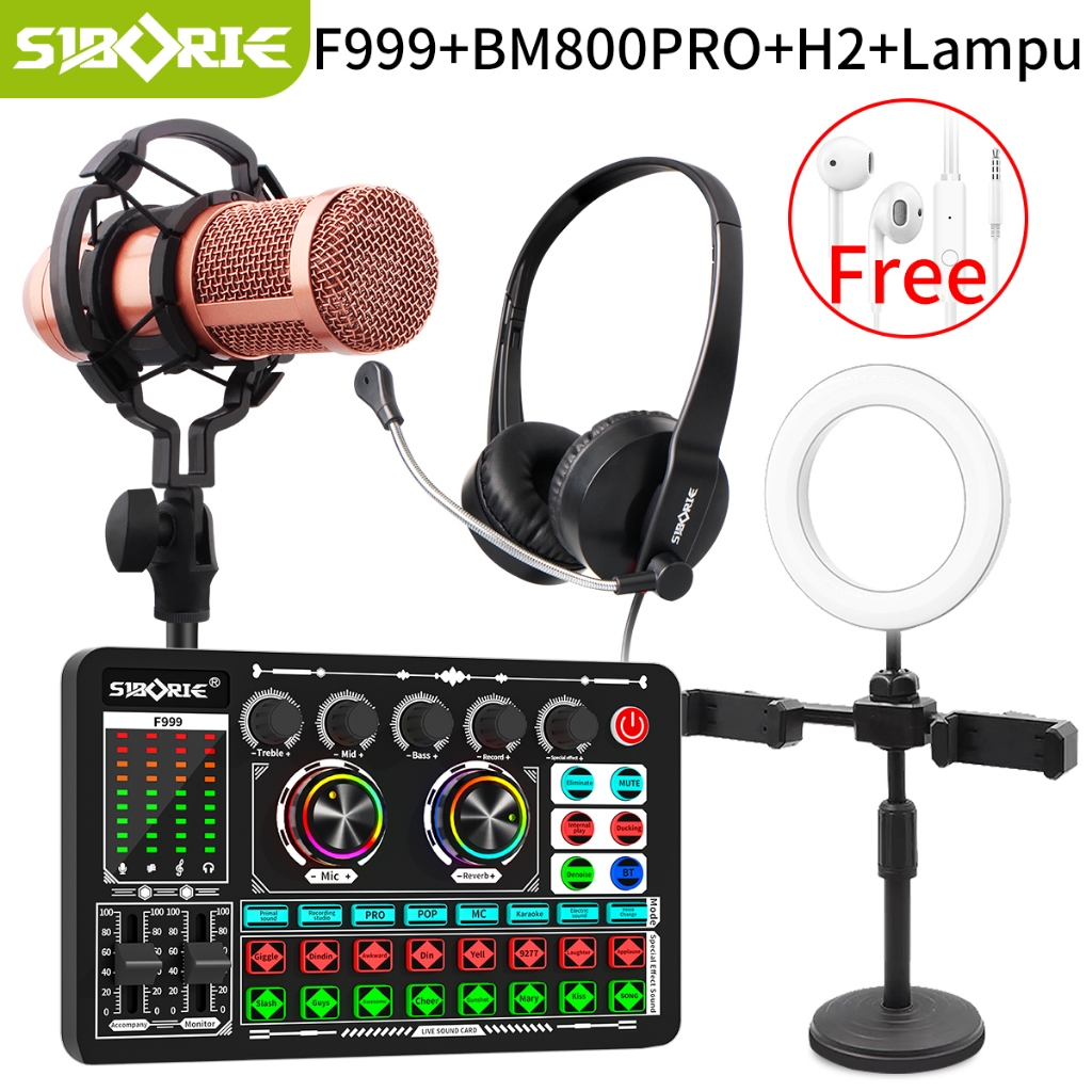 Siborie Soundcard F999+Bm800Pro Mic+H2 Headphone+Lampu Paket Lengkap With Free Headset For Live Streaming Media
