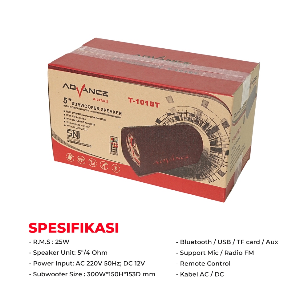 Speaker Bluetooth Advance Subwoofer Karaoke Super Bass Salon Aktif Wireless T101Bt
