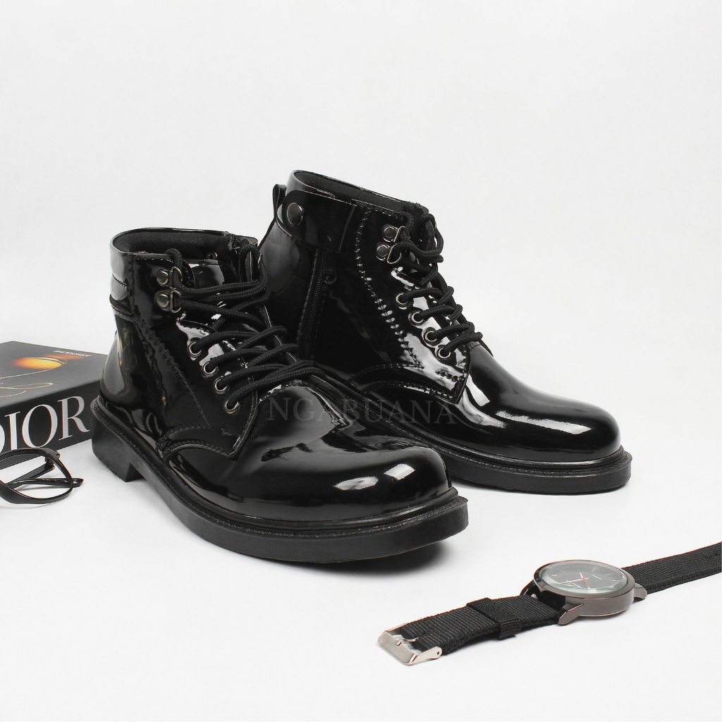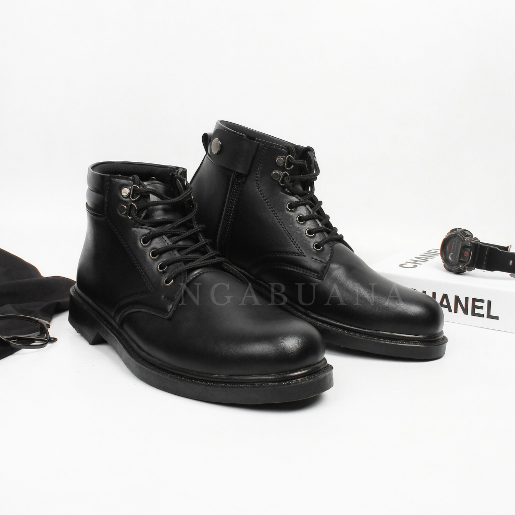 Sepatu Pdh Pria Dinas Tni Polri Security Satpam Model Tali Resleting Kulit Sintetis Doff/Kilap