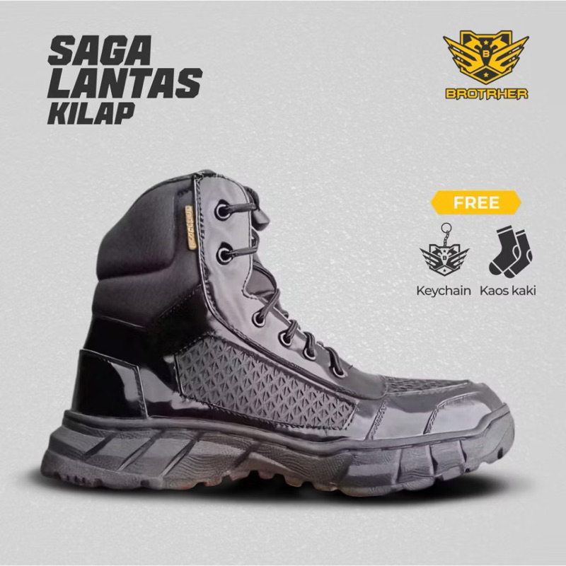 Brotrher Fitgo Sepatu Lantas Kulit Kilap Sepatu Pdh 6 Inch