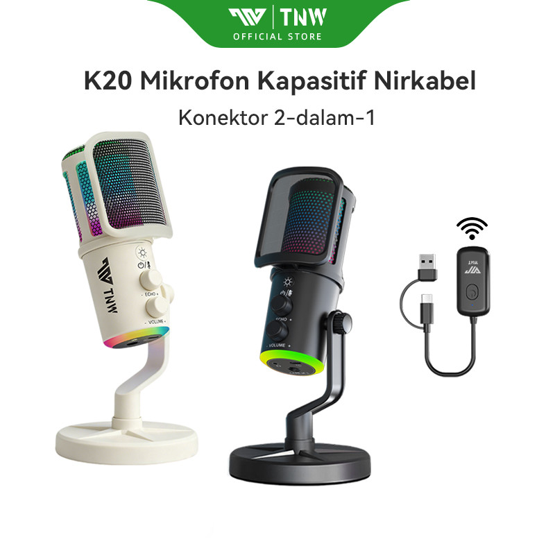 Tnw K20 Usb Kondensor Mikrofon Wireless Desktop Microphone With Rgb Light Untuk Podcaster Gamer Streamer