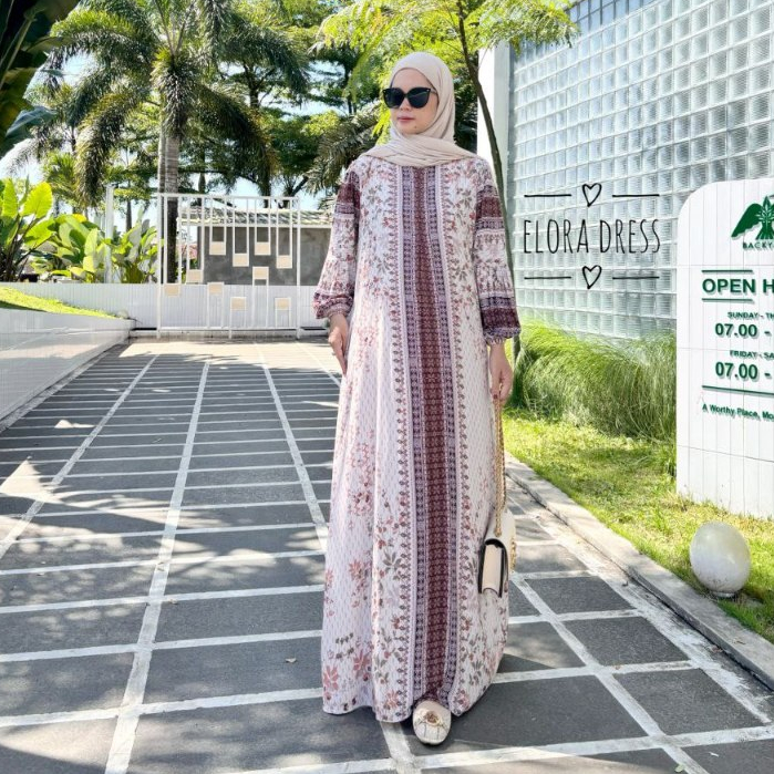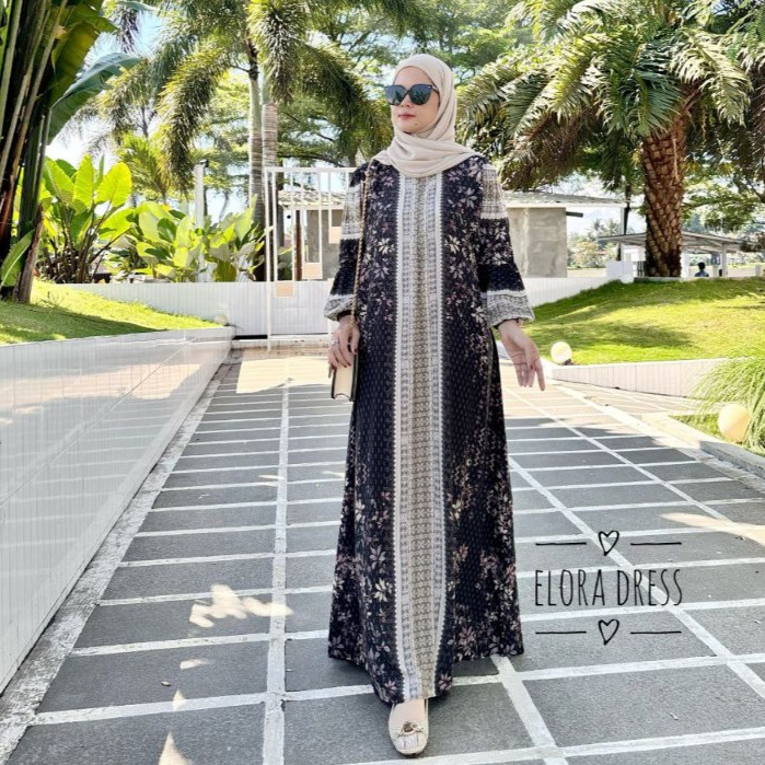 Elora Dress Gamis Panjang Rayon Terbaru Muslimah Model Lengan Balon Yayuku by Yayoe Hijab