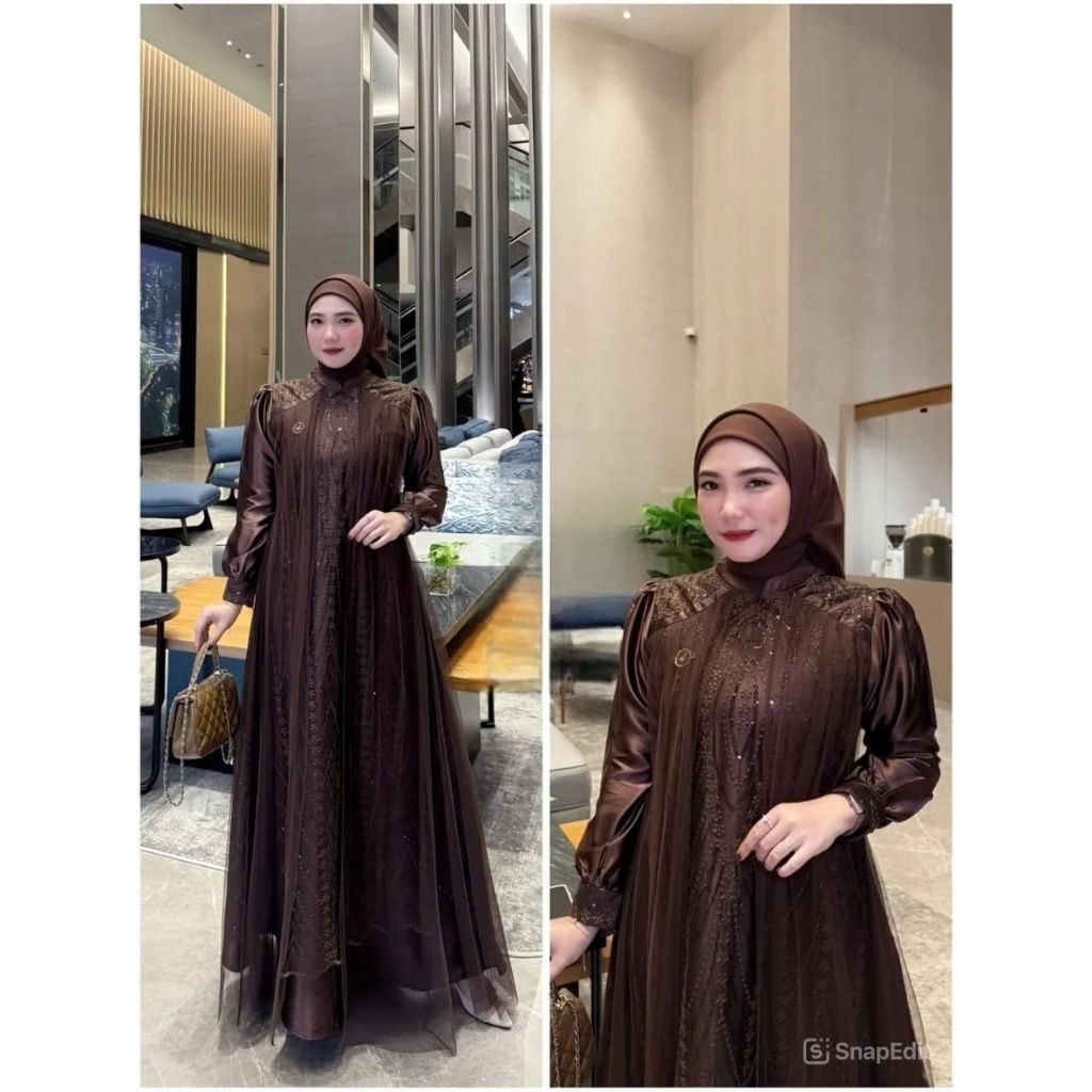 Leya dress gamis wanita bahan velvet mix brukat plus tile outfit pesta muslimah viola terbaru baju pesta cantik ootd kondangan aulia kekinian emerald burgundy mahogany best seller 2026