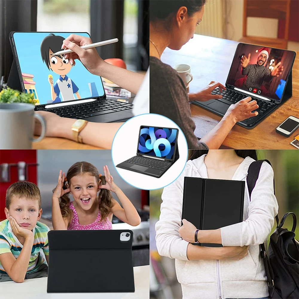 Tripledi Case Keyboard For Ipad Air 11 Inch M2 M3 2024 2025 Td0801 Cover Flip Folio Detachable Touchpad Led Backlit Blue