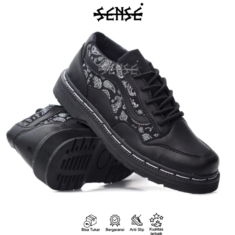 Sense - Sepatu Pantofel Formal Docmart Pria Hitam Paisley