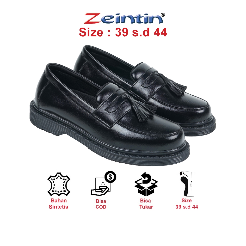Zeintin - Sepatu Slip On Loafers Docmart Full Blak Kulit Sintetis Od