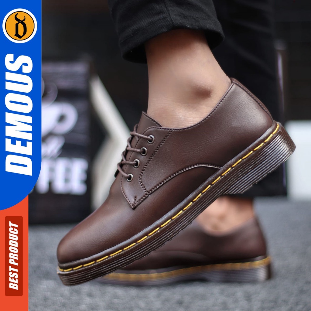Demous - Sepatu Docmart Pria Boots Casual Hitam Kulit Pu Original