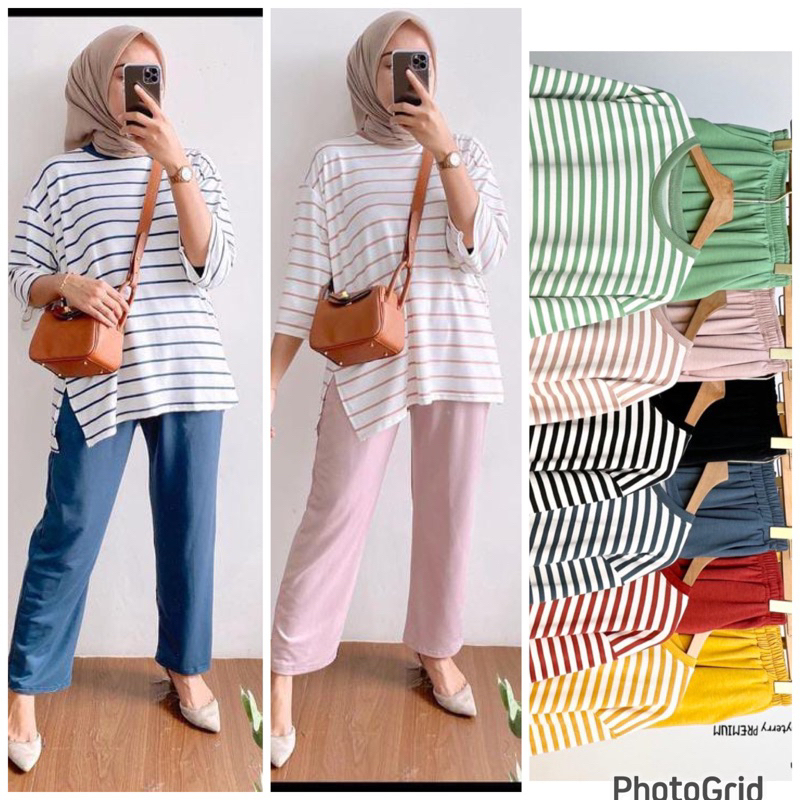 setelan celana wanita kaos knit import salur setelan wanita oversize setelan wanita jumbo setcel kaos