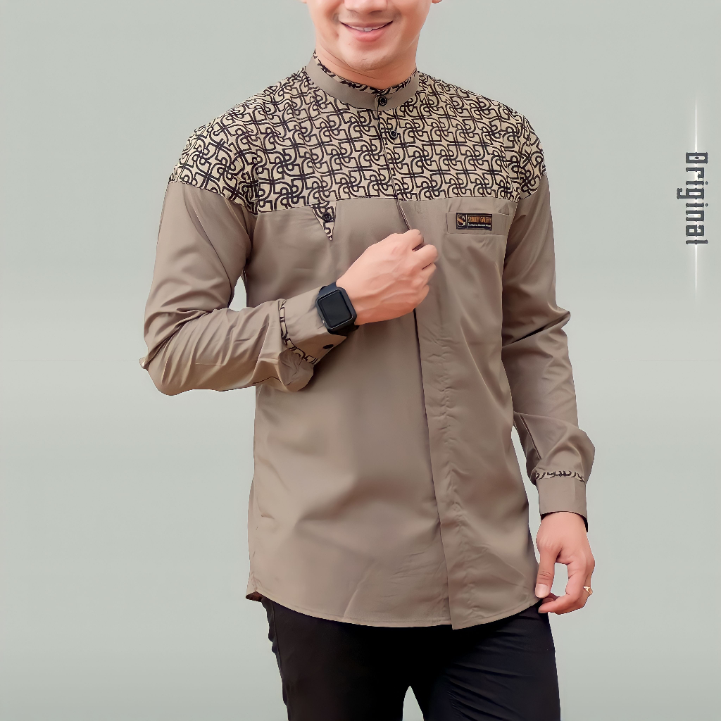 Baju Kemeja Koko Pria Lengan Panjang Kombinasi Batik Klasik Motif Bima Bahan Katun Toyobo