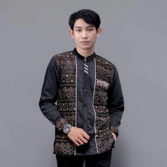 Baju Koko Pria Dewasa El Rumi Kombinasi Batik Motif JariList Terbaru Warna Hitam