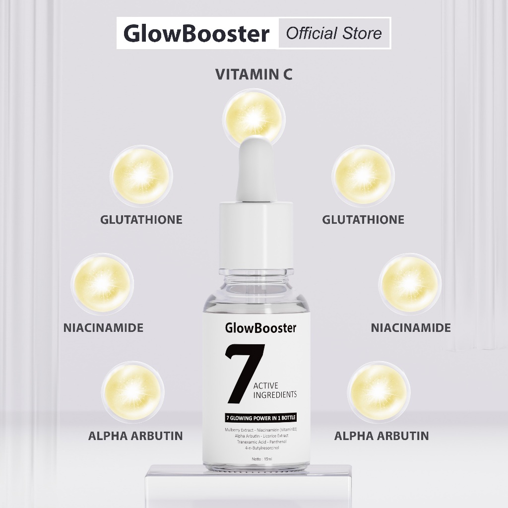 Serum Pencerah Wajah 2pcs- Serum GloowBooster 7 Active Ingredients | Serum Pencerah 7 Kandungan Aktif | Serum Pemutih Wajah 15ml