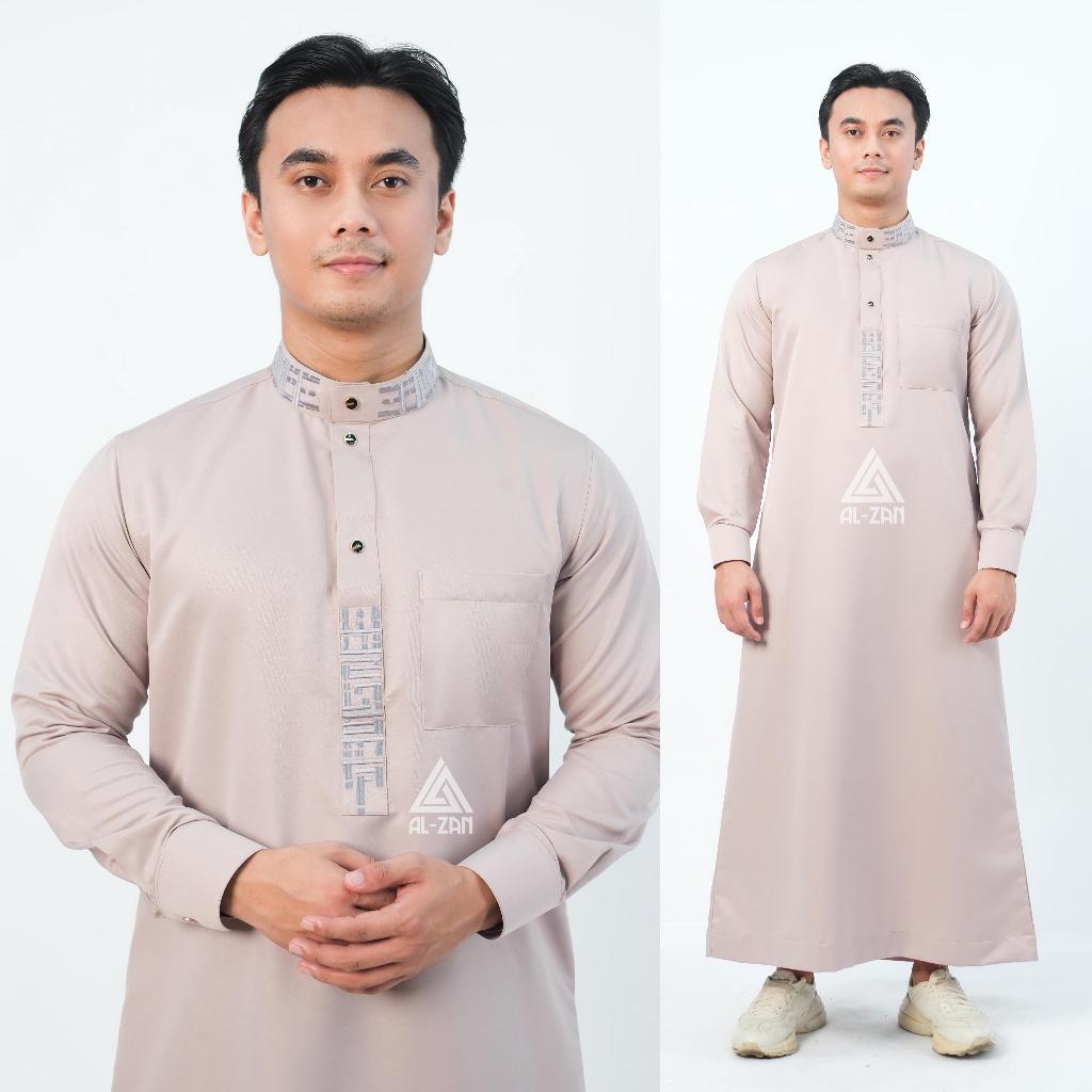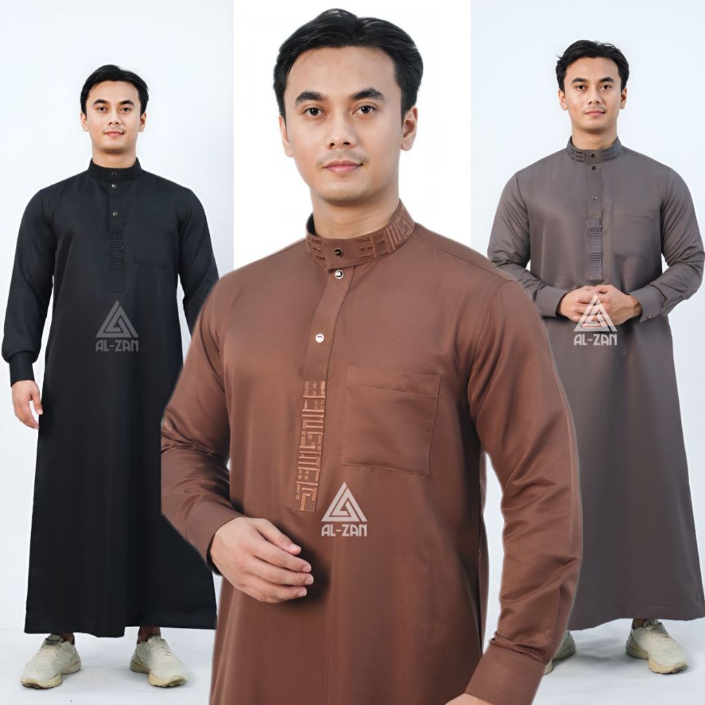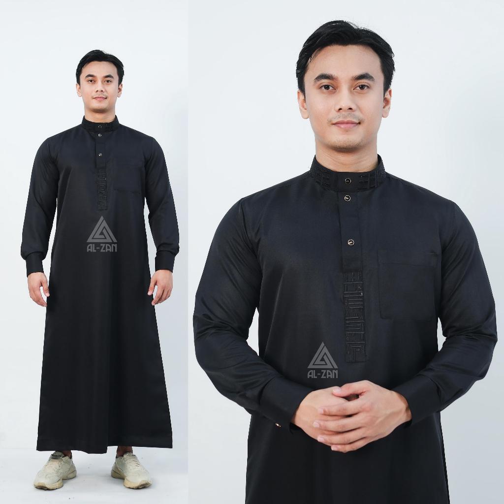 jubah pria muslim slimfit jubah gamis pria lengan panjang Bordir busana muslim baju jubah muslim Katun Toyobo Manset Dewasa Hitam Putih Arab alzan