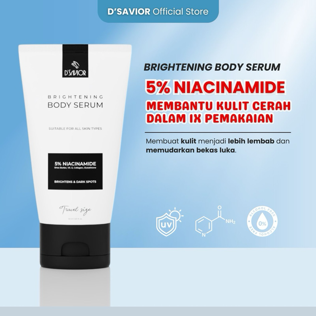 D'SAVIOR Body Serum Brightening Niacinamide 5 PERSEN - Serum Pelembab Pencerah kulit Body Booster & Whitening Efektif Travel Size 50ml
