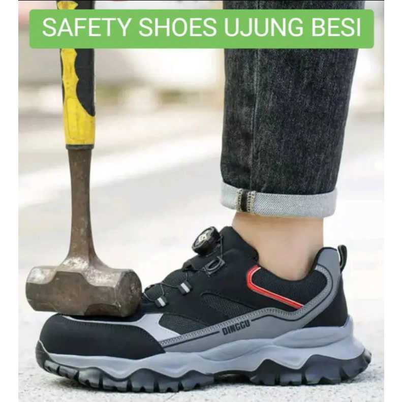 Sepatu Safety Ujung Besi Anti Slip Anti Tusuk Dan Benturan Tali Putar Ukuran 39-45