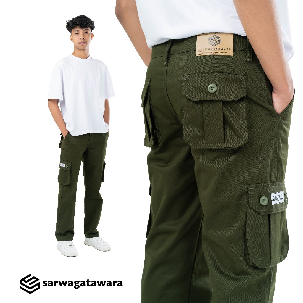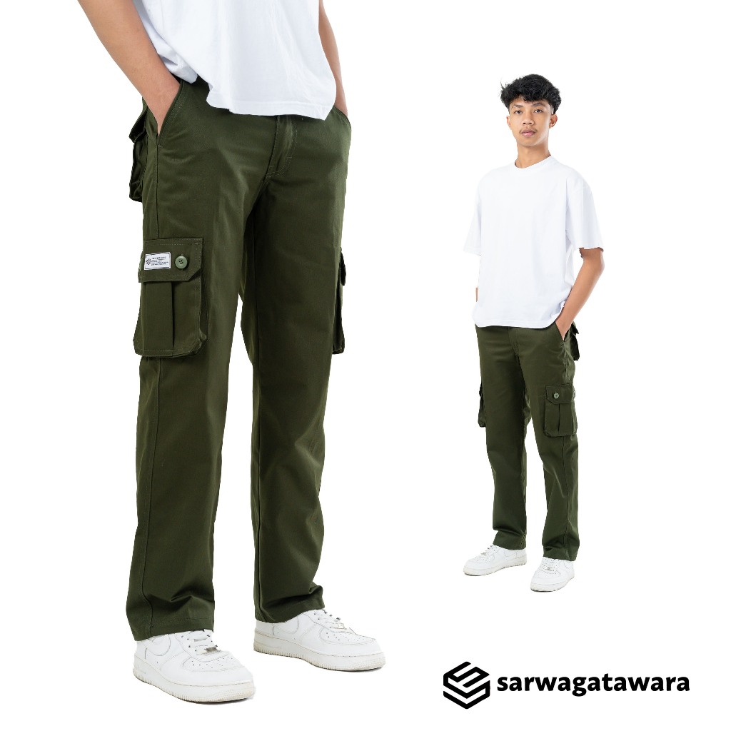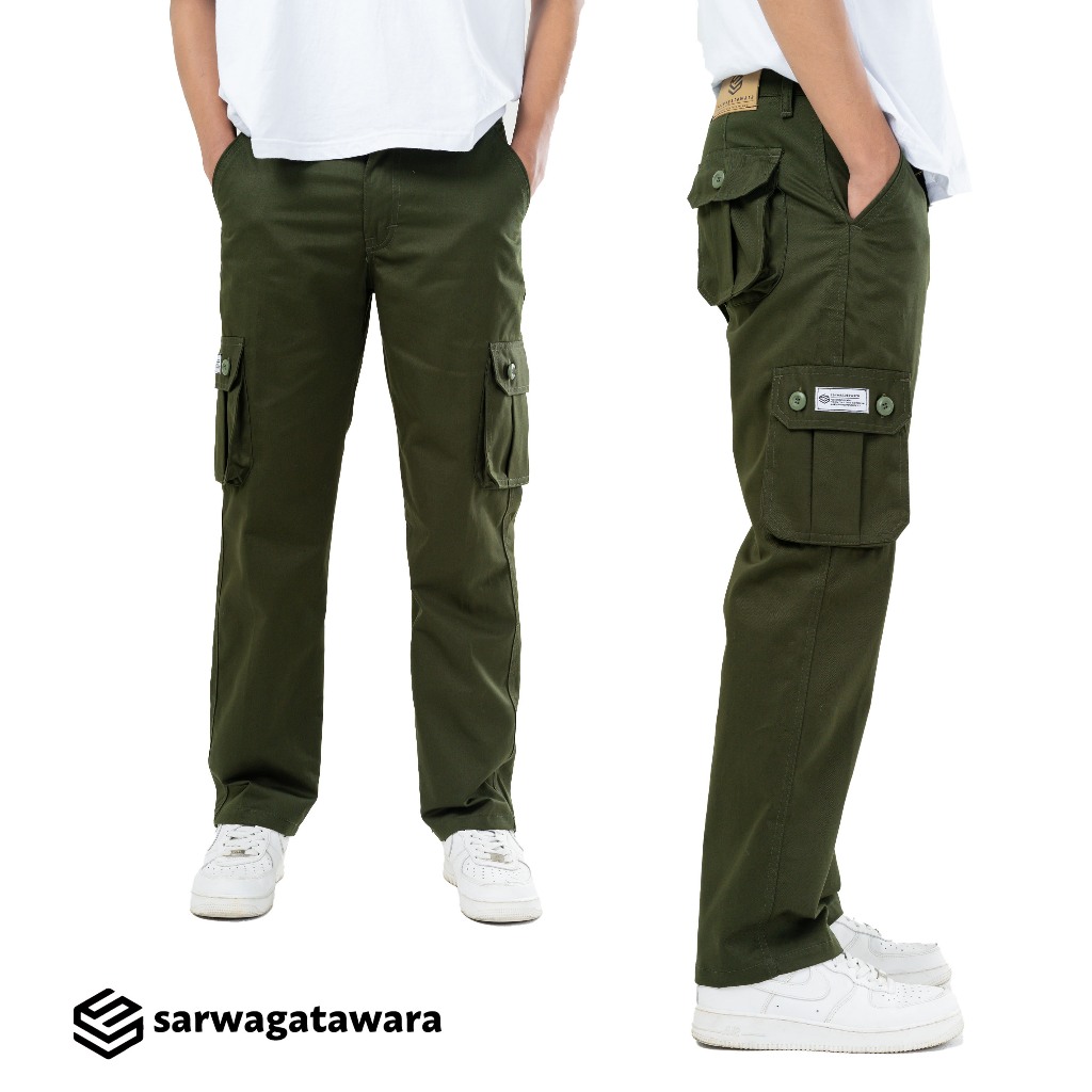 SARWAGATAWARA Celana Cargo Panjang Pria Basic Outdoor Green Army Slimfit