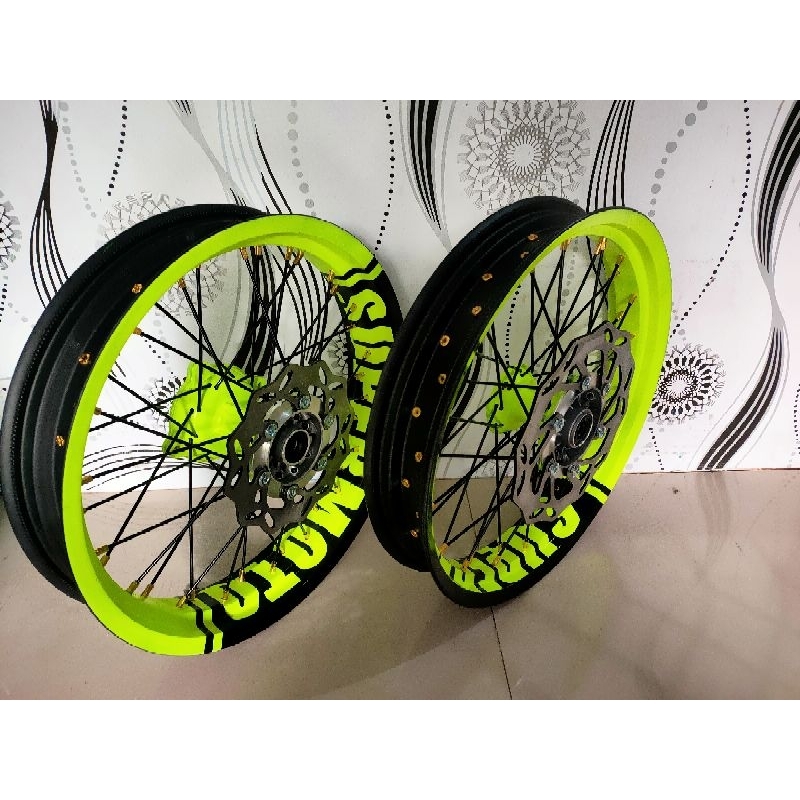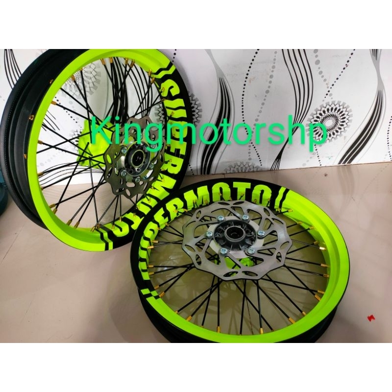 Velg supermoto KLX150 dan d traker full set ama ban IRC ukuran 100 ama 120 ring 17
