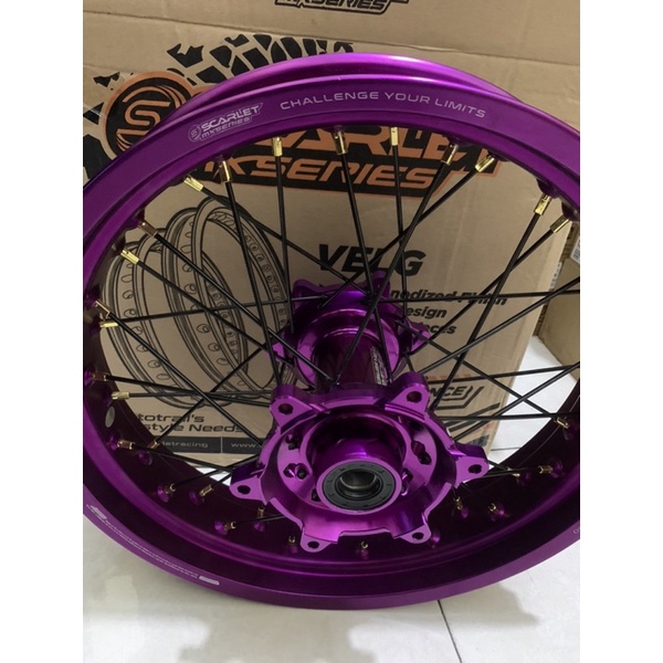 velg supermoto Scarlet 300 350 crf 150 Wr 155 klx 150 velg Scarlet tromol cnc Scarlet jari jari scarlet full cnc Tromol wilshet Wr 155 komplit ungu edition velaq velag komplit tingal pakai Wr 155 Ungu