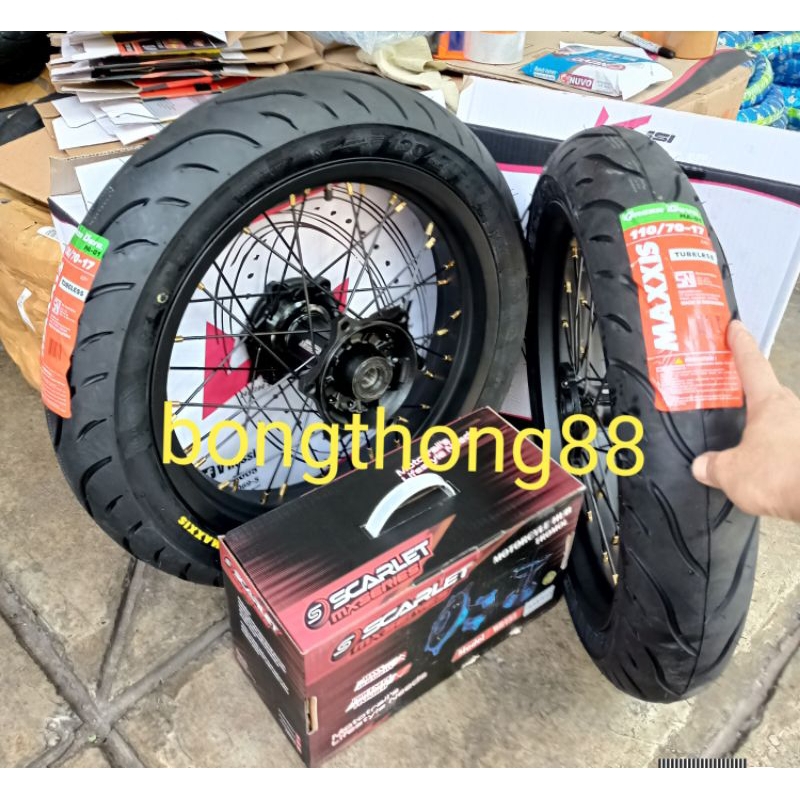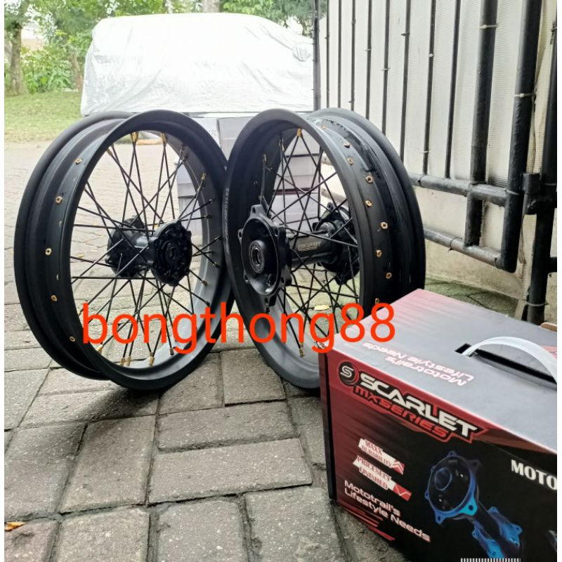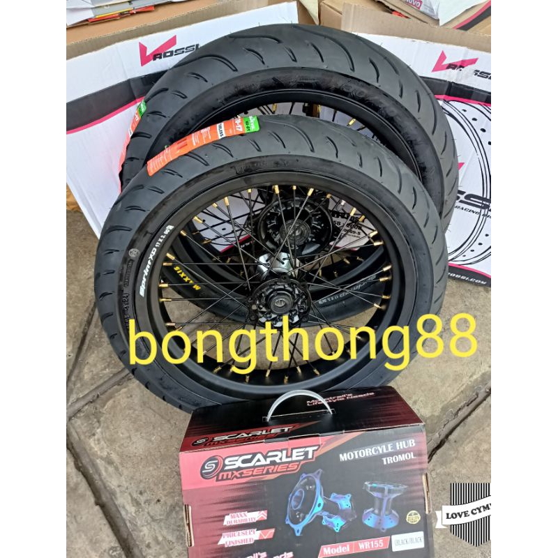 Sepaket Velg WR155 Supermoto SuperMoto 300 350 Yamaha WR155 Tromol Scarlet Jari Jari Scarlet Jumbo Paketan Plus Ban Maxxis Ukuran 100 110 120 130 140 150 Tapak Lebar