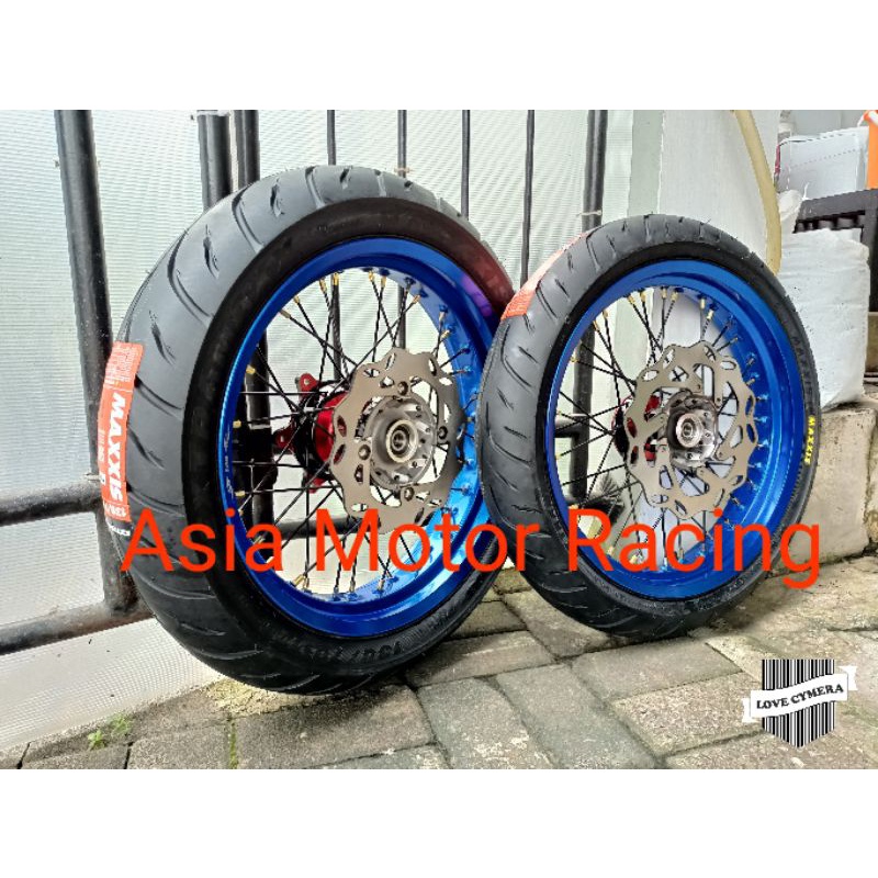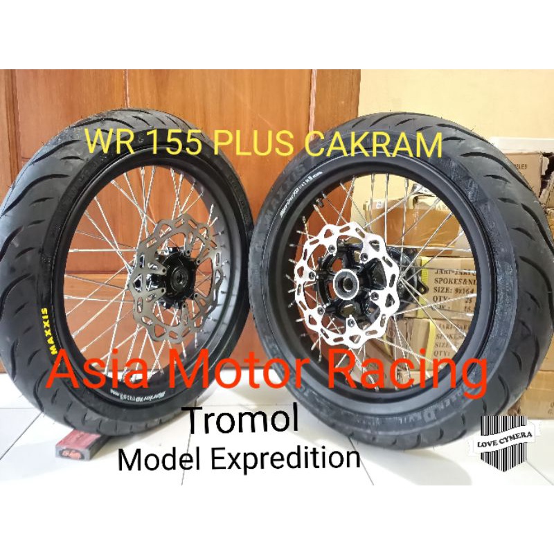 Sepaket Velg Supermoto Klx 150 Bf Dtracker/Honda CRF150 WR155 Velg 250-300 350 ring 17 tromol Original Zox Ban Tapak lebar Maxxis 90 100 110 120 130 140 17 Bonus disc