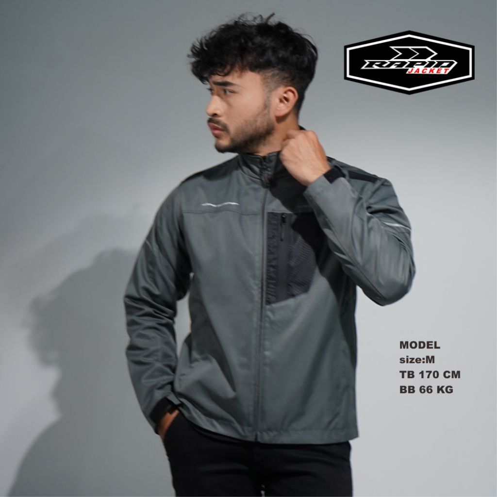 RAPID INFINITY jaket motor harian pria premium dengan bahan twill anti angin & air berkarakter tebal dilengkapi dengan saku khusus hp dan reflektif
