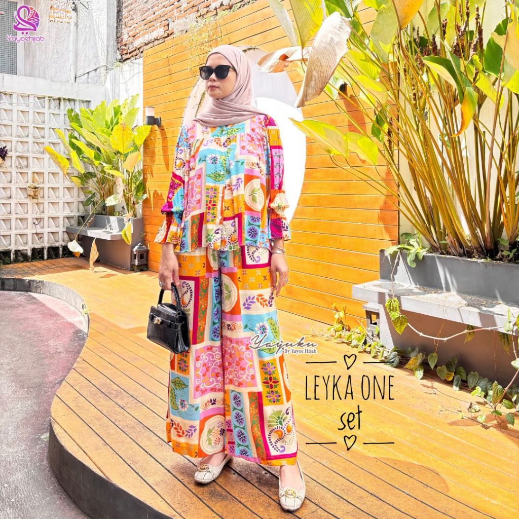 Leyka Oneset Atasan Celana Motif Bunga Hijab Friendly Muslimah Casual Nyaman & Stylish Modis Kekinian Yayuku by Yayoe Hijab