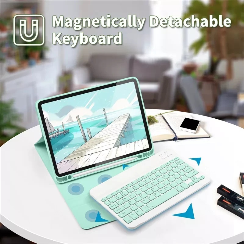 Samsung Galaxy Tab S10 Fe Plus 13.1 Inch X620 X626B Book Cover Leather Flip Case Keyboard Wireless Bluetooth Mouse Silen