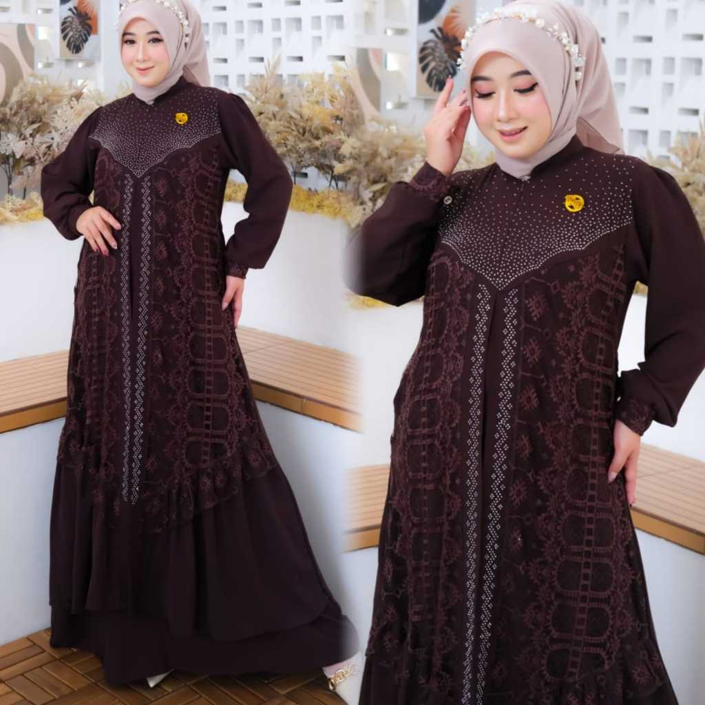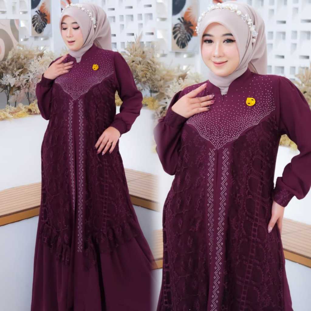 Hijab Pratiwi - Helwa Dress Gamis Cingkel Mix Brukat Mewah Elegant Terbaru untuk Dewasa & Remaja Kekinian Cocok Lebaran Gamis Hari Raya
