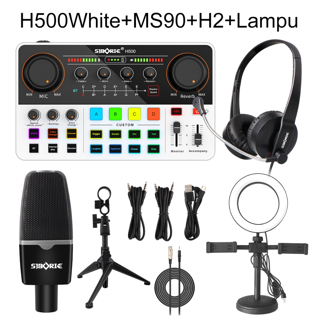 Siborie Siap H500+Ms90+H2+Lampu Paket Lengkap Soundcard Mic Headphone Streaming Langsung 100 PERSEN Original Pengiriman Cepat