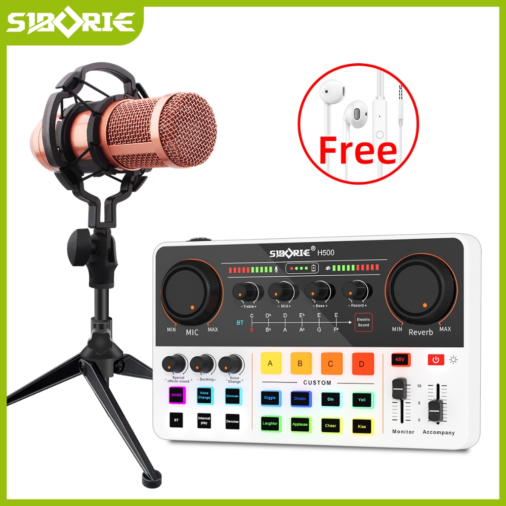 Siborie Soundcard H500+Bm800Pro Mic+E10 Headset Paket Lengkap Sound Card Komplit For Live Streaming Media