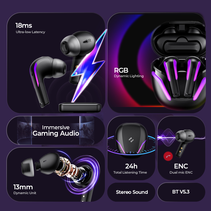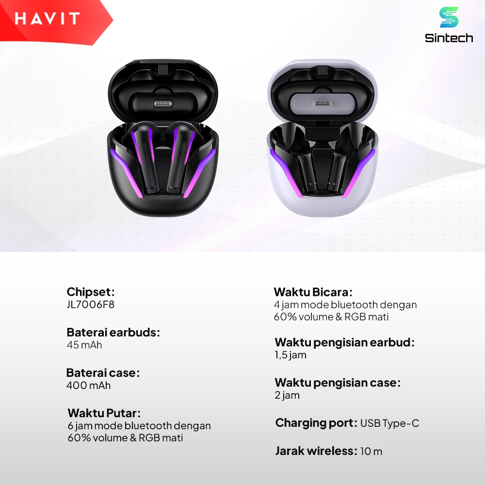 Sintechstore | Earphone Bluetooth | Tws Gaming | Havit Tw970 Type-C Rgb Earbuds 5.3 6H Playtime