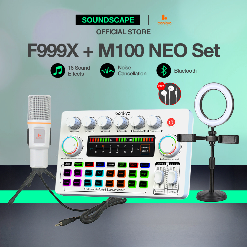 Soundscape Bonkyo F999X Sound Card Paket Streaming Lengkap Dengan M100Neo Mikrofon & Ring Light Untuk Penyanyi Tiktok S