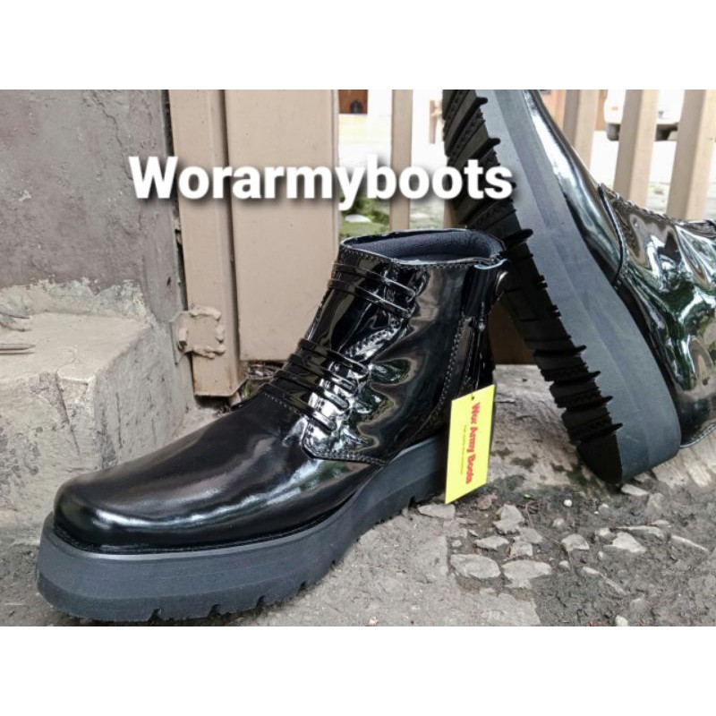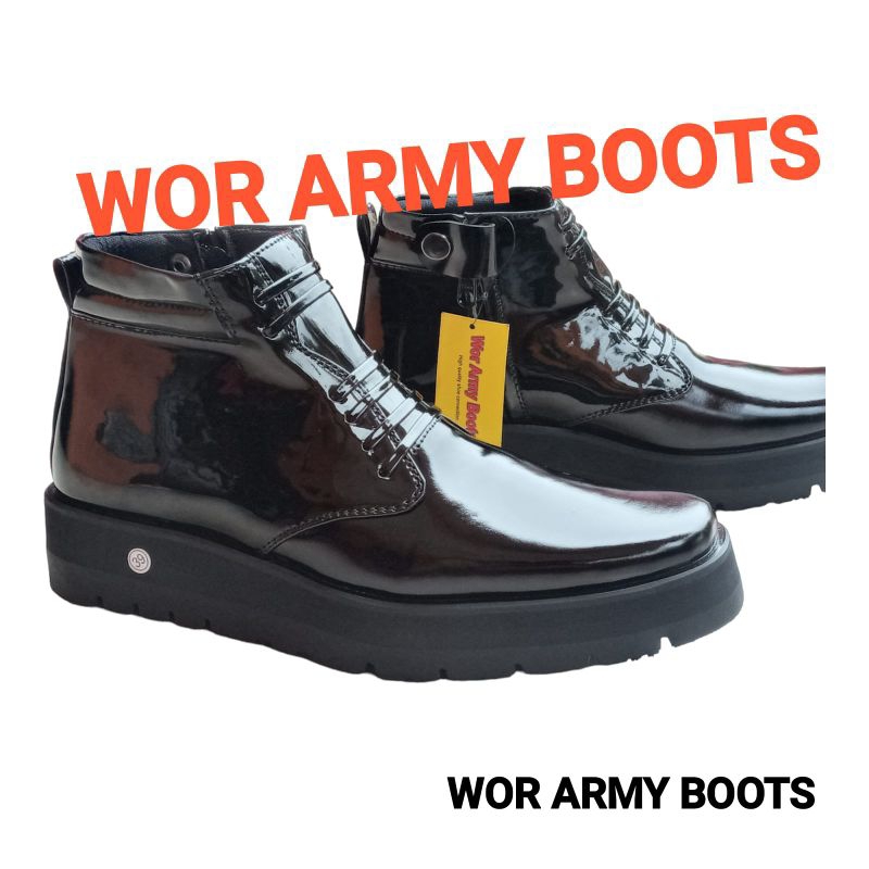 Sepatu Pdh Kulit Kilap Model P2021 Sol Tebal Bgt 3-5Cm Real Pict 100 PERSEN Harga Promo Size 38-46 By Wor Army Boots