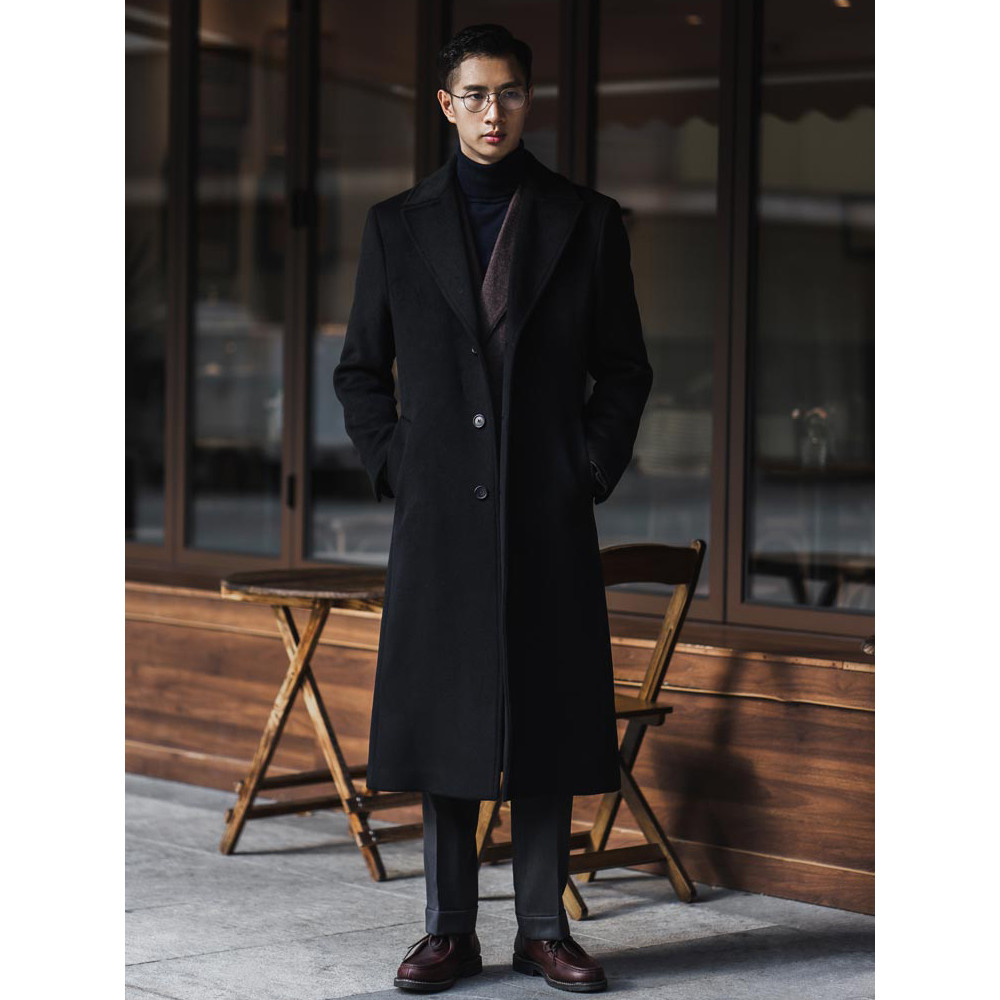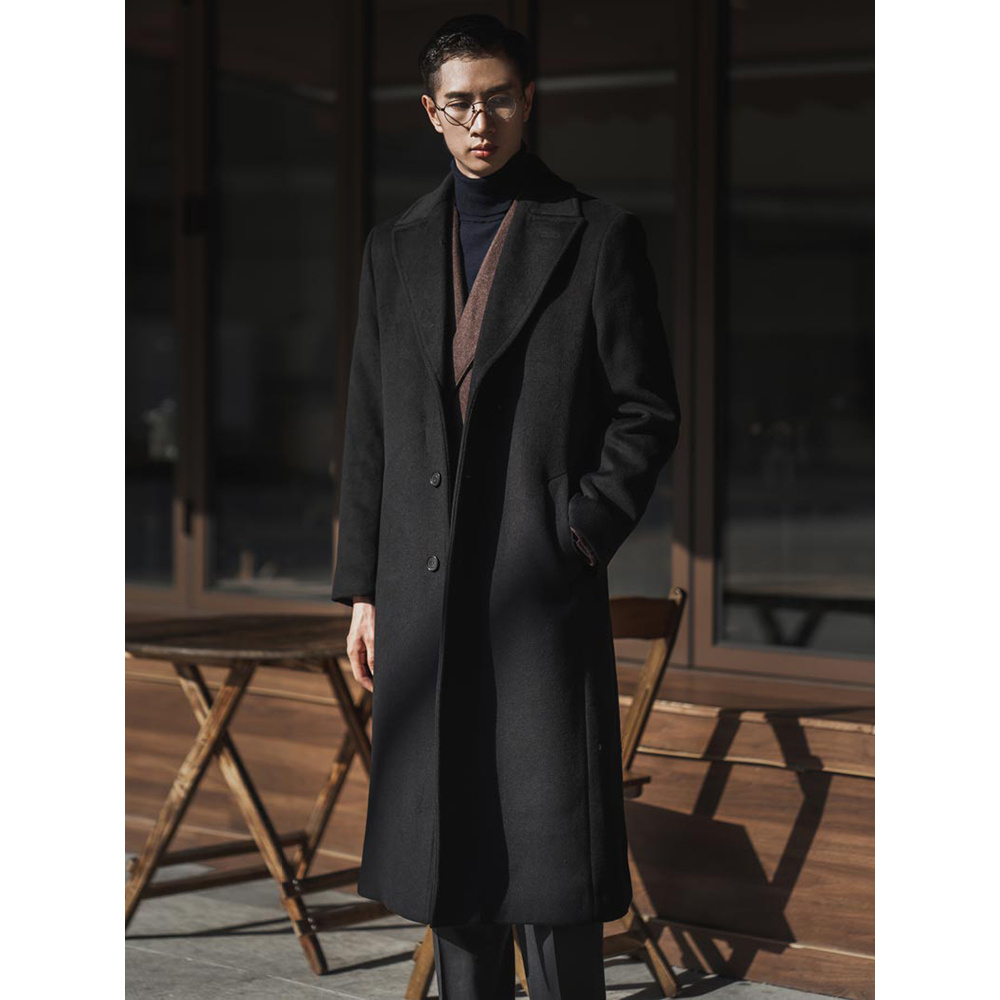 Autumn Winter Long Warm Black Trench Coat Men Single Breasted Luxury Wool Blends Overcoat High Quality Clothing