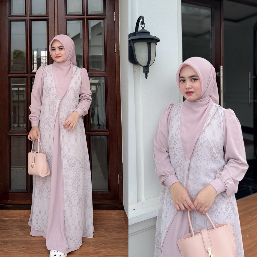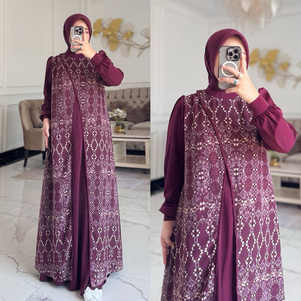 NNfashion KHANSA DRESS COUPLE ANAK GAMIS WANITA MUSLIMAH Dewasa Remaja Ibu Ibu Motif KOMBINASI Polos Mahogany